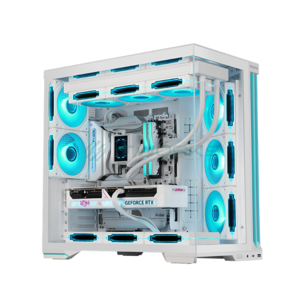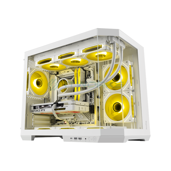 კომპიუტერის ქეისი: Segotep Infinite 5 Pro - Mid Tower, ATX, Desktop Gaming PC Case, Panoramic Tempered Glass, Up to 360mm Radiator Support, Type-C - with 4x120mm ARGB Fans (White)