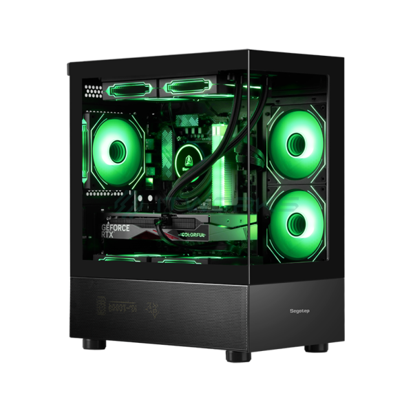 კომპიუტერის ქეისი: Segotep Endura 240S - Mid Tower, Micro-ATX, Desktop Gaming PC Case, Panoramic Tempered Glass, Up to 240mm Radiator Support - with 3x120mm ARGB Fans (Black)