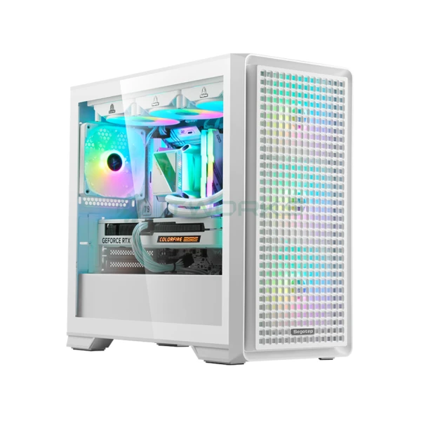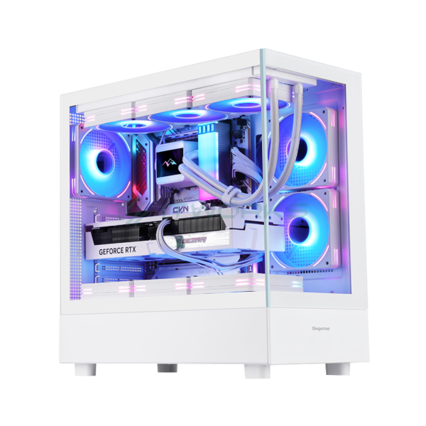 კომპიუტერის ქეისი: Segotep Endura Pro+ - Mid Tower, E-ATX, Desktop Gaming PC Case, Panoramic Tempered Glass, Up to 360mm Radiator Support - with 3x120mm ARGB Fans (White)