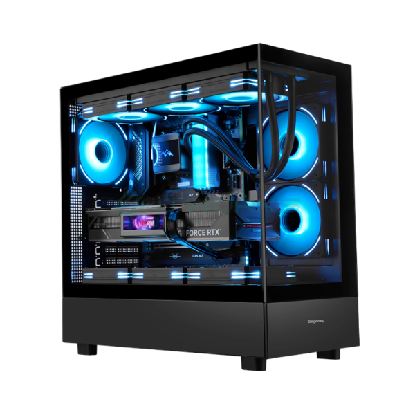 კომპიუტერის ქეისი: Segotep Endura Pro+ - Mid Tower, E-ATX, Desktop Gaming PC Case, Panoramic Tempered Glass, Up to 360mm Radiator Support - with 3x120mm ARGB Fans (Black)