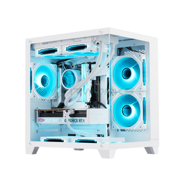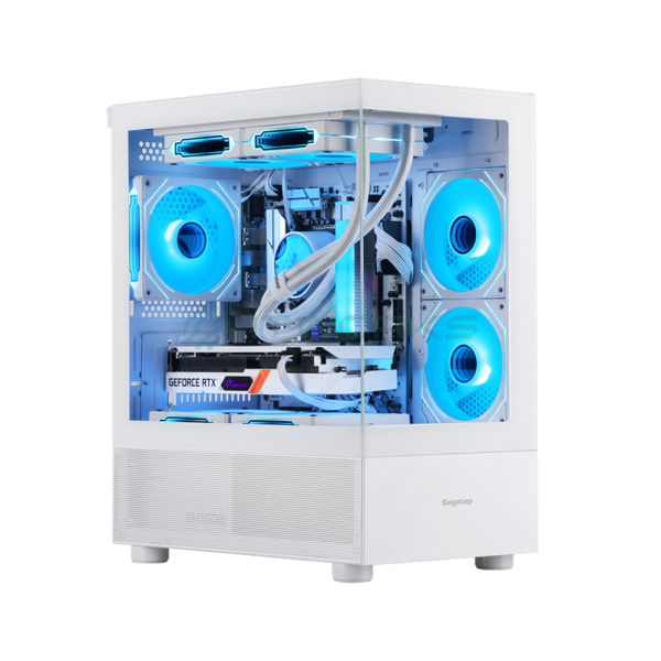 კომპიუტერის ქეისი: Segotep Radiant - Mid Tower, ATX, Desktop Gaming PC Case, Tempered Glass, Up to 360mm Radiator Support - Without Fans (White)