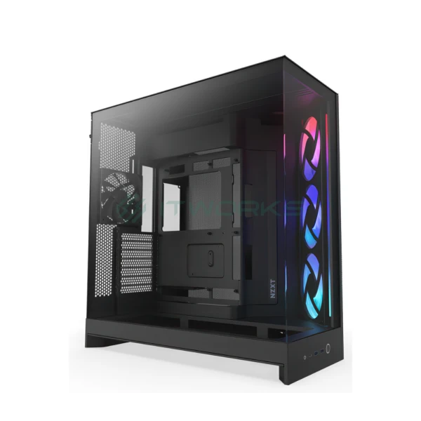 კომპიუტერის ქეისი: NZXT H9 Flow RGB 2025 - Mid Tower, E-ATX, Desktop Gaming PC Case, Panoramic Tempered Glass, Up to 420mm Radiator Support, Type-C - with Pre installed 3x140mm ARGB & 1x120mm PWM Fans (Black)