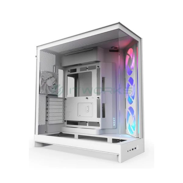 კომპიუტერის ქეისი: NZXT H9 Flow RGB 2025 - Mid Tower, E-ATX, Desktop Gaming PC Case, Panoramic Tempered Glass, Up to 420mm Radiator Support, Type-C - with Pre installed 3x140mm ARGB & 1x120mm PWM Fans (White)