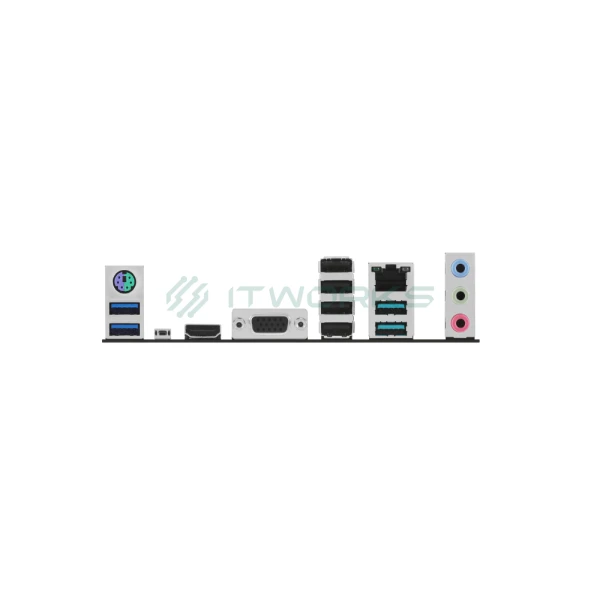 | შემომავალი პორტები უკანა პანელზე | 2 x USB 3.2 Gen 2 ports (2 x Type-A) 2 x USB 3.2 Gen 1 ports (2 x Type-A) 4 x USB 2.0 ports (4 x Type-A) 1 x VGA port 1 x HDMI™ port 1 x Realtek 2.5Gb Ethernet port 3 x Audio jacks, 1 x PS/2 Keyboard/Mouse combo port |